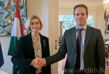 A francia nyelv és kultúra közvetítése iránti kivételes elkötelezettsége elismeréseként rangos kitüntetésben részesült Nagy Andrea. A Debreceni Egyetem (DE) Bölcsészettudományi Kar (BTK) Mediterrán Nyelvek és Kultúrák Intézete Francia Tanszék vezetője a Francia Állam Akadémiai Pálmarendjének lovagi fokozatát vehette át Jonathan Lacôte nagykövettől Budapesten, a Francia Nagyköveti Rezidencián rendezett ünnepségen.